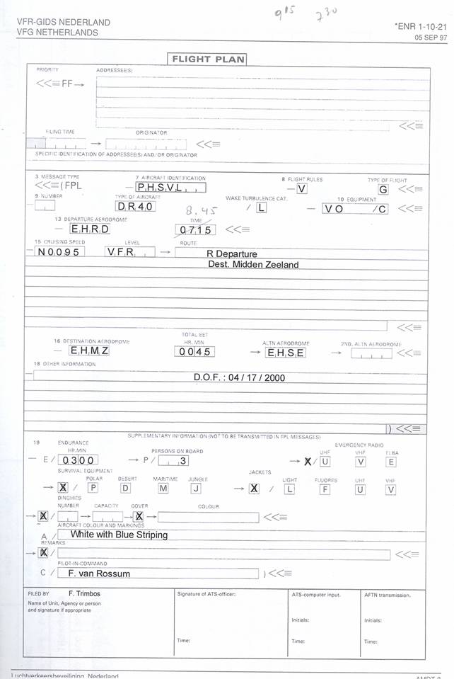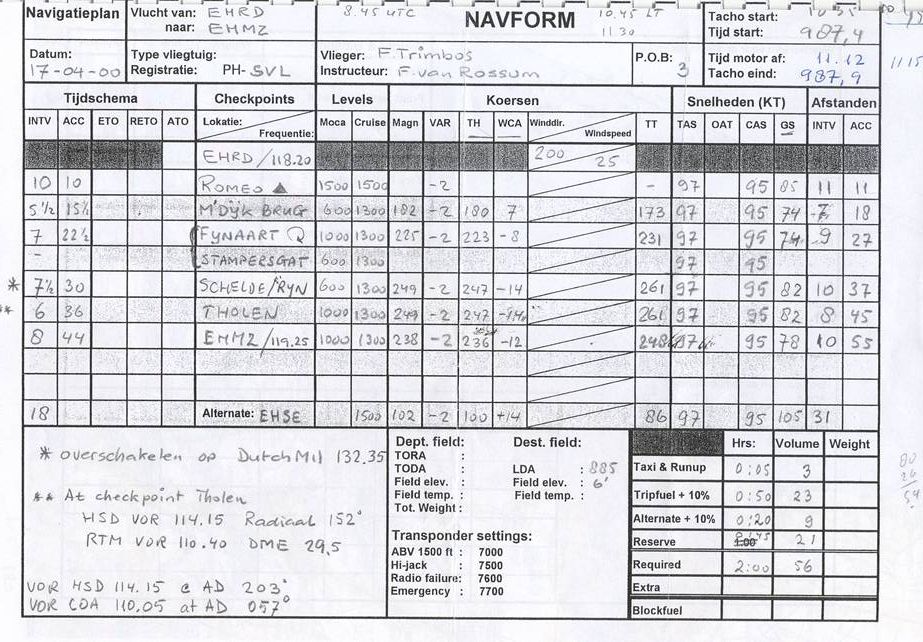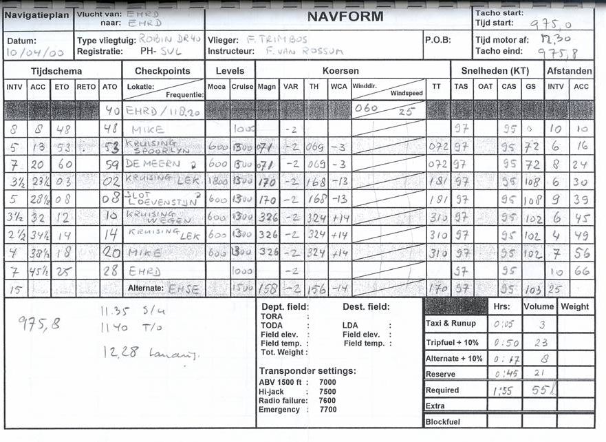 Rotterdam. Op 1200 vt met een IAS van 100, kwam er een grondsnelheid uit van