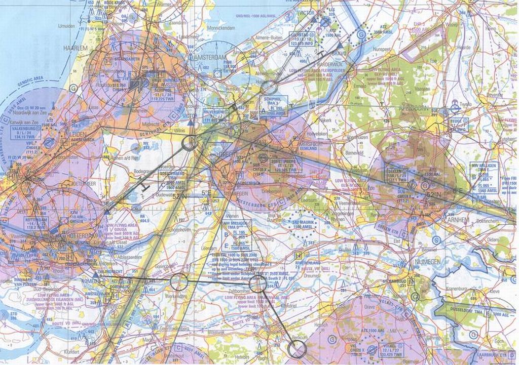 een Bravo departure naar het noorden. Met al die kronkels in de Maas is het