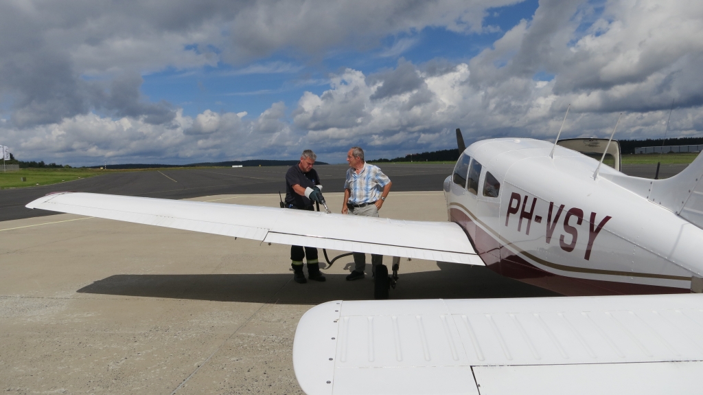 kosten van landing, stalling etc betaald heb ruim 200 euro, worden we tot aan het vliegtuig begeleid door een alleraardigste dame. Na de nodige checks en een litertje olie bijvullen,